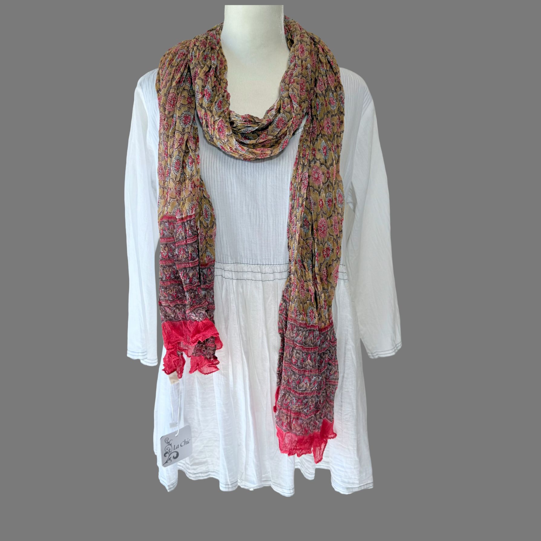 Light, airy, and effortlessly stylish — these chiffon stoles add a touch of elegance to any outfit. Crafted with a soft crinkled texture, each piece is hand block-printed in assorted patterns and vibrant color-ways, making every stole unique. Perfect as a layering accessory, they drape gracefully for both casual and dressy looks.