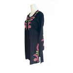Beautiful Kurta in stunning neon embroidery. Made with superior soft cotton this tunic just envelopes you in softness and comfort. The neon-colored embroidery on the front, sides, cuffs, and on the back neckline adds to the wow factor of this Tunic. It has side slits for easy wear and movement.