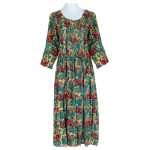 Exuding timeless elegance, this ankle-grazing dress combines artisanal block print with soft, breathable cotton for effortless charm. Pintuck detailing across the bodice shapes the silhouette, cascading into a graceful flare that moves with ease. A round neckline and slightly loose ¾-length sleeves enhance its relaxed sophistication, while discreet pockets add a practical, stylish touch.