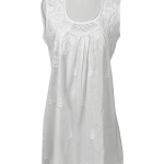 Beautiful hand-embroidered tunic in superior cotton. The tunic is sleeveless with no side slits. Accented with a small crochet front the tunic looks and feels very different and elegant. Back is accented with an embroidered motif for a fully authentic look. You can pair it easily with leggings or shorts.