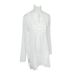 Soft-feel, airy and comfortable Top in superior cotton with fine hand embroidery. Front yoke style, with scattered embroidered motifs at the bottom and sides. Back has a matching embroidered motif. Slight gathers at the base of the yoke for extra comfort. 3/4-sleeves and side slits. Beautiful style for upper casual wear or wear it over work pants for a smart office wear.